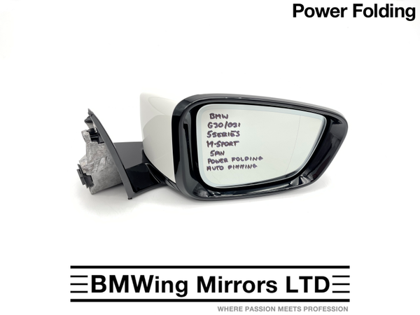 BMW 5 G30 G31 RIGHT DRIVER SIDE DOOR WING MIRROR / 5 PIN POWER FOLDING / WHITE
